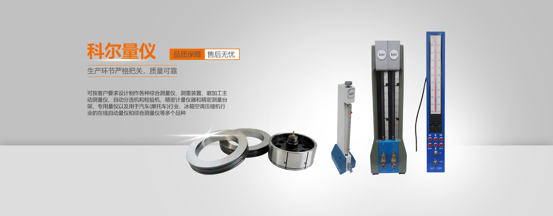 梁山科爾量?jī)x機(jī)械廠,科爾里儀,創(chuàng)量?jī)x ,專業(yè)研制、經(jīng)營(yíng)浮標(biāo)式氣動(dòng)量?jī)x、電子柱量?jī)x、各種動(dòng)測(cè)頭、校對(duì)環(huán)規(guī)、柱、塊的企業(yè)。可按客戶要求設(shè)計(jì)制作各種綜合測(cè)量?jī)x、測(cè)重裝置、磨加工主動(dòng)測(cè)量?jī)x、自動(dòng)分選機(jī)和檢驗(yàn)機(jī)、精密計(jì)量?jī)x器和精密測(cè)量臺(tái)架、專用量?jī)x以及用于汽車(摩托車)行業(yè)、冰箱空調(diào)壓縮機(jī)行業(yè)的在線自動(dòng)量?jī)x和綜合測(cè)量?jī)x等多個(gè)品種。公司研制的耐磨氣動(dòng)測(cè)頭、多參數(shù)硬質(zhì)合金氣外測(cè)校;新研制的單噴嘴直線度氣內(nèi)測(cè)頭、深受各行業(yè)的歡迎;八噴嘴平均直徑氣動(dòng)測(cè)量裝置為薄壁缸套行業(yè)提供了簡(jiǎn)便快捷的檢測(cè)手段;各種單參數(shù)、多參數(shù)氣測(cè)校已普遍使用。廣泛應(yīng)用于汽車、摩托車、冰箱、空調(diào)、機(jī)床、機(jī)車、機(jī)械、紡織液壓件、活塞、內(nèi)燃機(jī)、齒輪、壓縮機(jī)、醫(yī)藥軍工、輕I電子航天機(jī)電、科研院所等行業(yè)...